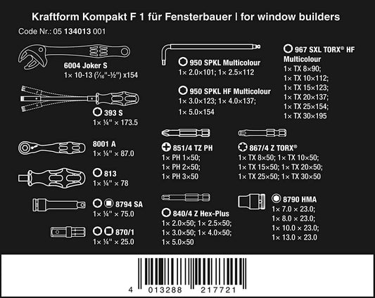 Schraubwerkzeuge für Fensterbauarbeiten 35 Stück Wera Kraftform Kompakt F 1 ref.134013