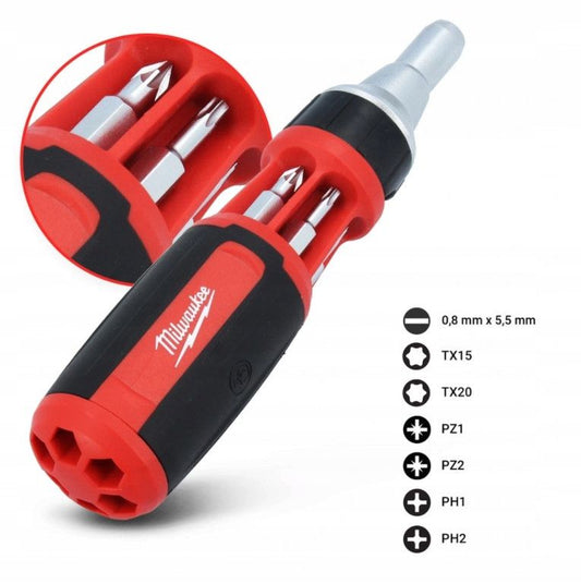 Un destornillador multipuntas Milwaukee es una herramienta manual que incorpora varias puntas intercambiables integradas en un único mango o mecanismo interno. Esto permite tener acceso rápido a diversas puntas (slotted, Phillips, Torx, etc.) sin cargar varios destornilladores. Milwaukee ofrece versiones con mecanismos de trinquete, empuñaduras extraíbles, almacenamiento interno de puntas y acabados resistentes al óxido. En su catálogo oficial lo describen como “destornilladores multipuntas” con almacenamiento en la empuñadura y detección rápida de falta de punta. :contentReference[oaicite:0]{index=0}