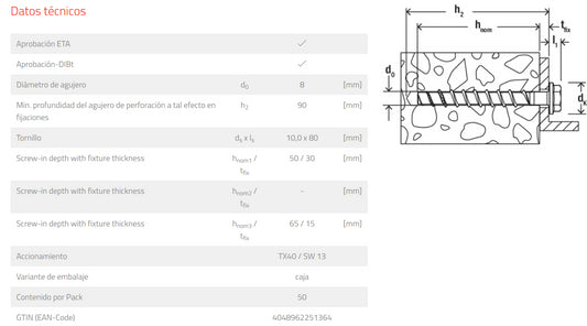 Box 50UD SX 8X40 Dübel + 5X50 Fischer Schraube