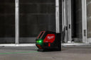 Láser de línea cruzada verde, proporciona una funcionalidad todo en uno con nivelación horizontal y alineación vertical. Dispone de unos diodos verdes de alta intensidad que proporcionan un rango de trabajo de 30m y hasta 50m con detector.