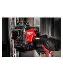 El nivel láser verde M12™ de 3 líneas ofrece una funcionalidad de todo en uno con una línea horizontal y dos líneas verticales para una alineación y nivelación rápidas y fáciles, lo que permite diseñar espacios grandes con una sola herramienta
