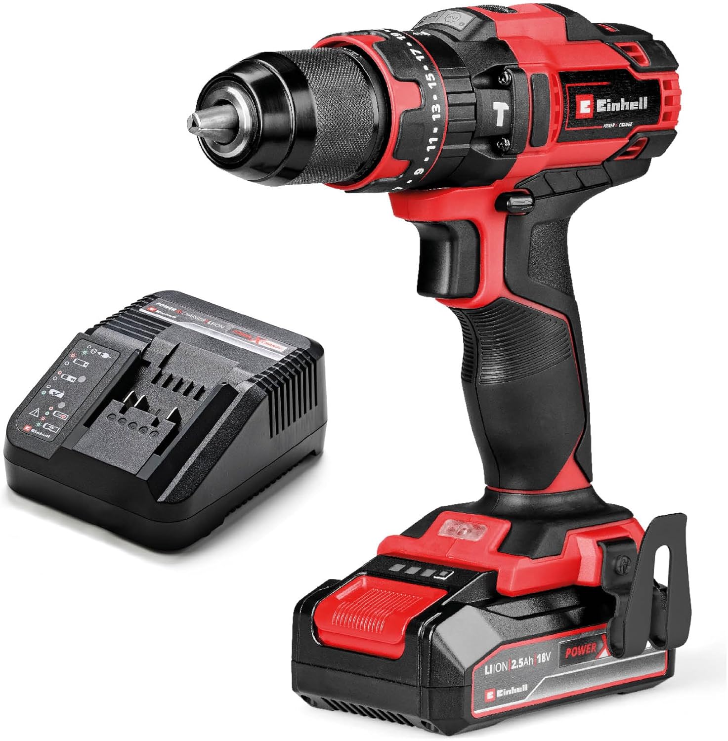 Der Akku-Schlagbohrschrauber TE-CD 18/44 Li-i (1x2,5 Ah) von Einhell ist ein Allrounder für jeden Heimwerker. Als Mitglied der leistungsstarken Power X-Change-Familie ist er mit allen Batterien und Ladegeräten der Systemreihe kompatibel. Das robuste 2-Gang-Getriebe eignet sich für kraftvolles Bohren und Schrauben mit einem Drehmoment von bis zu 44 Nm.
