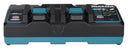 Dual-port rapid charger capable of charging two Makita XGT Li-Ion batteries simultaneously as quickly as the DC40RA charges one battery. Charges a battery in 22 - 50 minutes, depending on battery capacity.