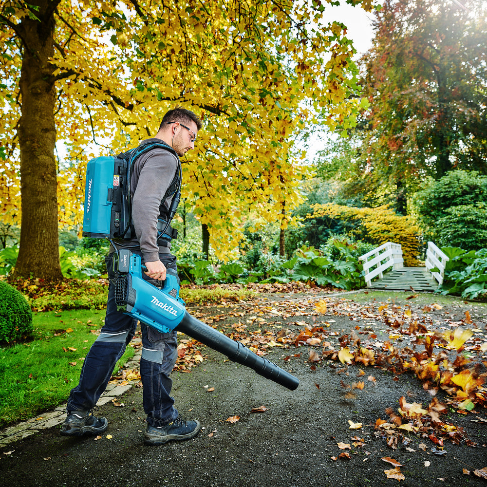 Rucksack-Akku zum Betrieb von 18-V-LXT®-Werkzeugen. Der Akku kann mit Werkzeugen der LXT® 18V- und 18V X2-Serie verwendet werden, wenn ein geeigneter Adapter verwendet wird. Der Akku-Pack kann bis zu vier Batterien aufnehmen und bietet somit eine längere Laufzeit im Vergleich zur Verwendung von einer oder zwei angeschlossenen Batterien.