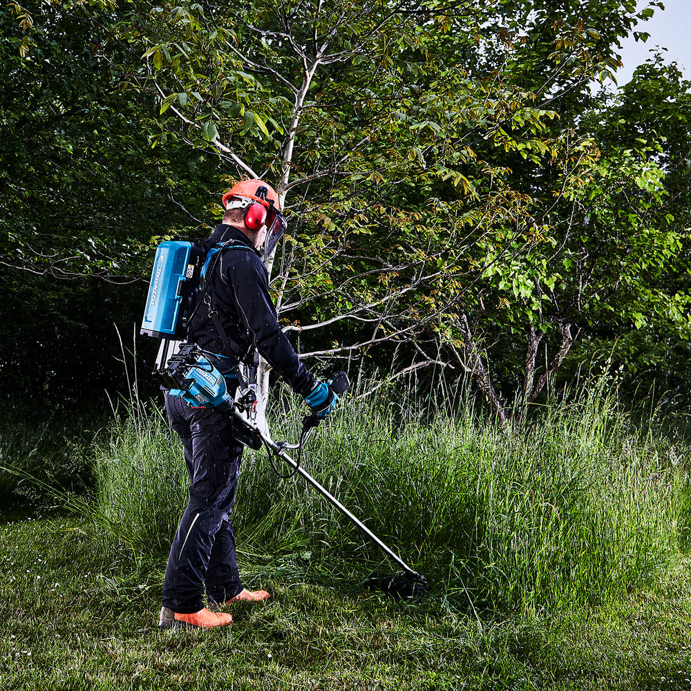 Der Akku-Pack sitzt bequem auf dem Rücken, wodurch die Arbeit angenehmer wird und eine längere Betriebszeit des Werkzeugs ermöglicht wird. Der Rucksack kann auch als stationärer Akku verwendet werden, wenn das Rucksack-Geschirr abgenommen wird.