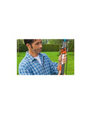 Der Teleskopstiel ist so konstruiert, dass er bis zu einer Höhe von 5 Metern bequem funktioniert. Er besteht aus Aluminium und ist besonders leicht und stabil. Der ovale Griff sorgt für mehr Stabilität und verhindert ein Verdrehen während der Einstellung. Ein Stoßdämpfer verhindert ein ungewolltes Zurückziehen des Griffs (ohne Beschädigung). Die Klemmschraube mit Kunststoffteilen, die das Werkzeug sichert, ist so eingestellt, dass sie nicht verloren gehen kann.