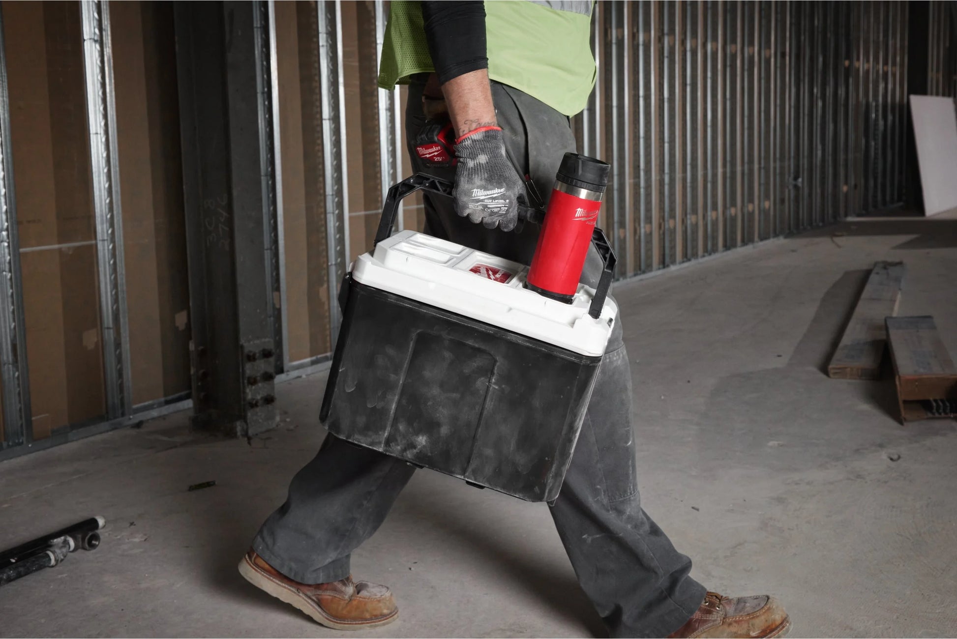 Die PACKOUT Thermosflasche von Milwaukee ist eine isolierte Flasche bzw. ein Thermobecher, der dafür entwickelt wurde, sich in das modulare PACKOUT-System zu integrieren. So kann sie sicher auf PACKOUT-Boxen oder -Koffern befestigt werden, um dein Getränk auf der Baustelle oder in der Werkstatt stets geschützt zu halten. Sie besteht aus robusten Materialien, ist für harte Arbeitsumgebungen ausgelegt und hält Getränke viele Stunden lang heiß oder kalt.