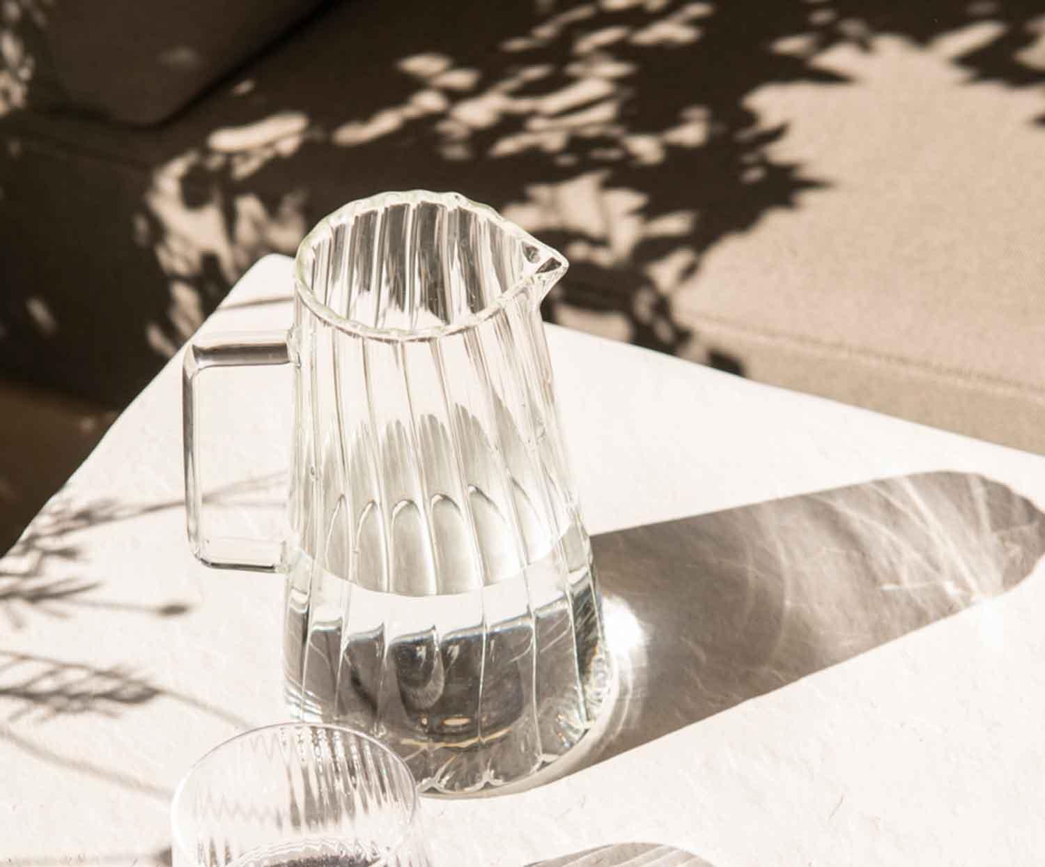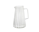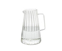 Glas-Wasserkrug mit 1 Liter Fassungsvermögen, klassischem gerilltem Design und ergonomischem Griff, ideal zum Servieren von Wasser oder anderen Getränken am Tisch oder zum Kühlen im Kühlschrank. Sein zeitloser Stil passt zu jeder Tisch- und Einrichtungsdekoration.